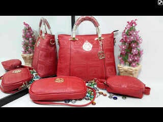 READY - CK 2009 4in1 (tas besar, dompet behel, 2 dompet oval) size 29 x 22 cm, 24 x 14 cm, 20 x 11 cm dan 18 x 10 cm bahan glosy semi premium free pompom CK, ada tali panjangnya juga ...