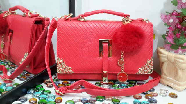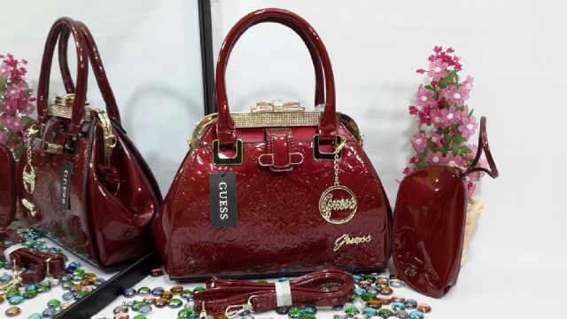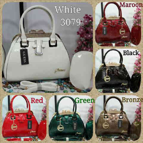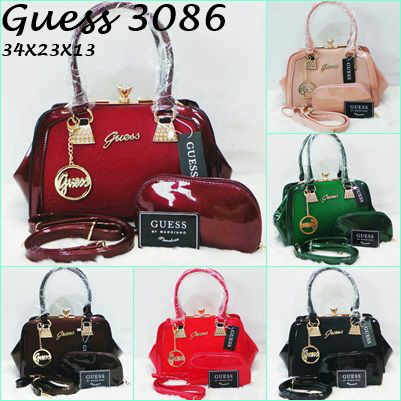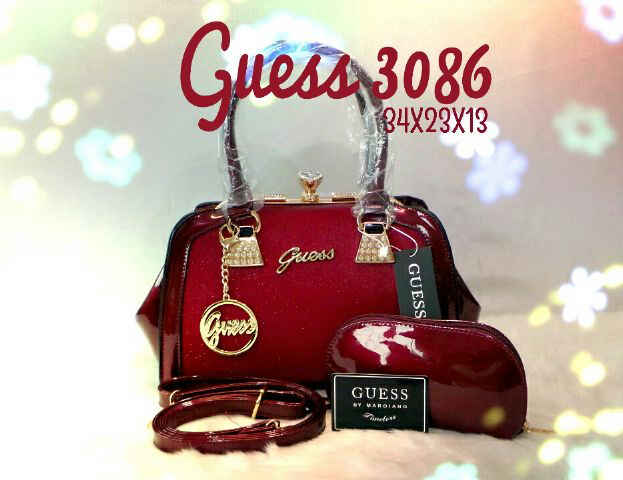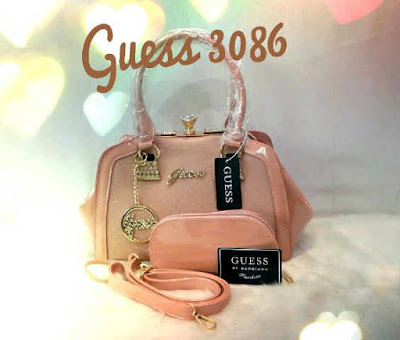 READY - Guess 3079 Behel Diamond size 31 x 25 cm bahan glosy super import free dompet oval, ada tali panjangnya.
