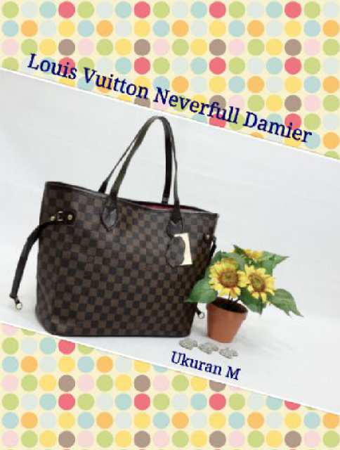READY - LV Neverfull size M 30 x 28 cm bahan semsup list matang, khusus damier.