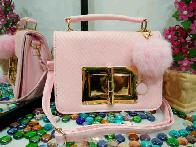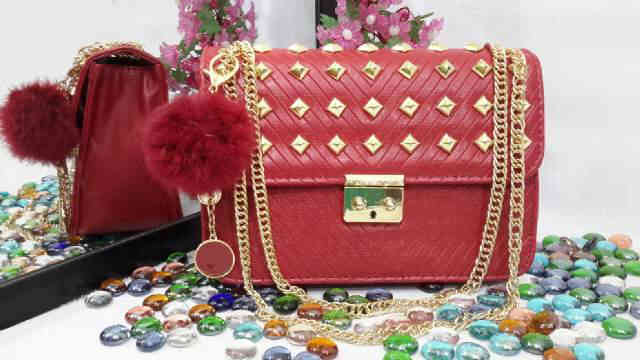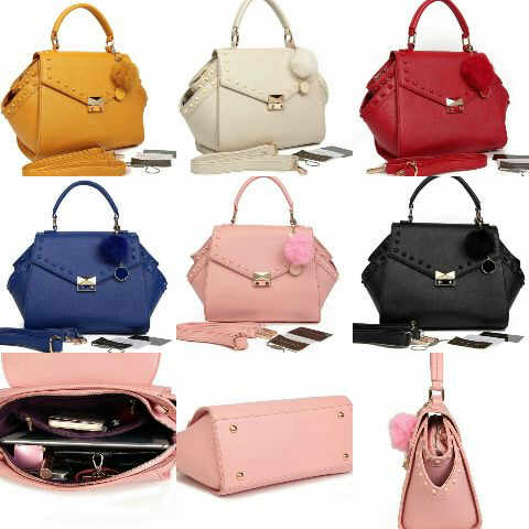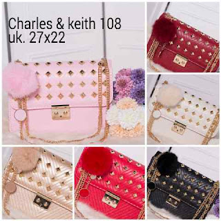 READY - CK Studded 1539 size 28 x 24 cm bahan taiga semi premium free pompom ck, ada tali panjangnya.