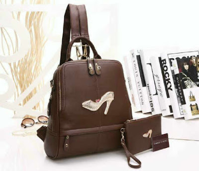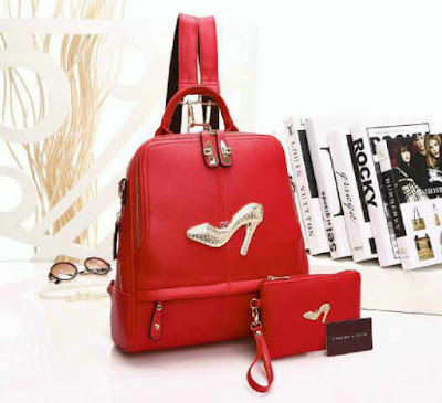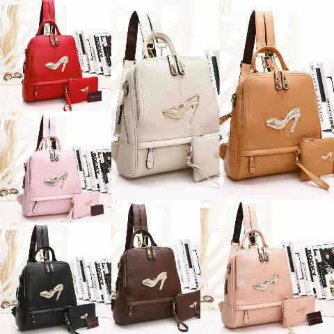 READY - Ransel CK Sepatu Syahrini 3 in 1 (ransel, sandang, selempang) bahan taiga semi premium size 30 x 35 cm + dompet 18 x 12 cm, ada tali panjangnya.