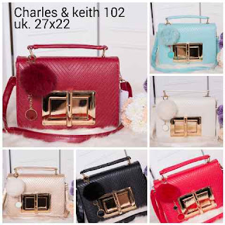 READY - CK 102 bahan emboss semsup import size 27 x 22 cm free pompom ck, ada tali panjangnya.
