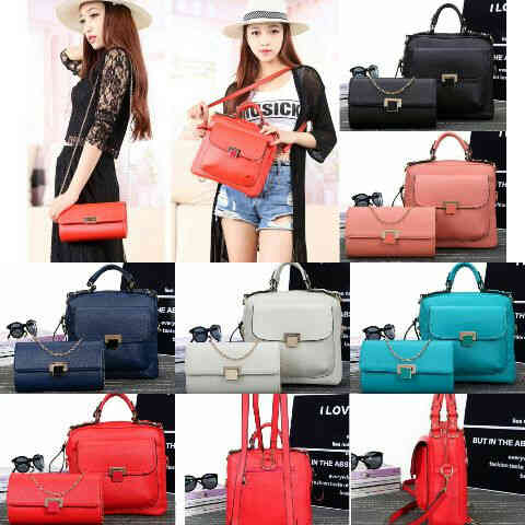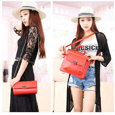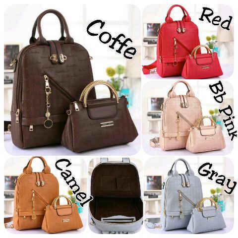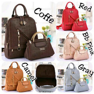 READY - CK 540 Ransel SET 3in1 (ransel, sandang, selempang) bahan kulit tebal emboss semi premium size 30 x 37 cm, 25 x 15 cm, ada tali panjangnya.