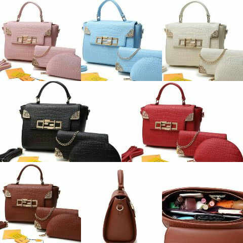 READY - Fendy 1865 3in1 (tas besar, clutch, dompet oval) size 28 x 25 cm, 21 x 12 cm, 18 x 11 cm bahan croco dove semi premium, ada tali panjangnya.