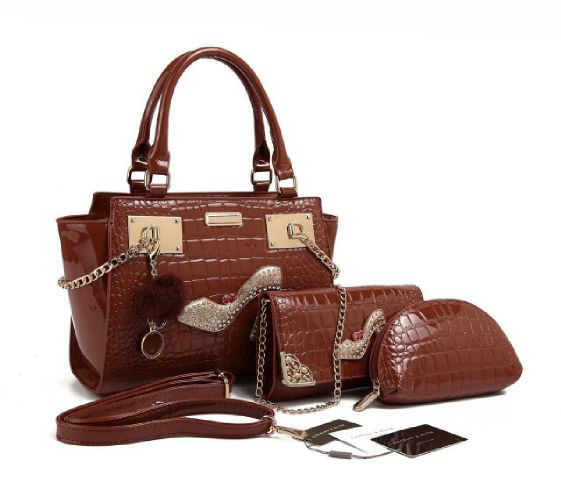 READY - CK 2008 Sepatu Syahrini Blink Blink bahan croco glosy semi premium 3 in 1 (tas besar, clutch tali panjang rantai, dompet oval) size 28 x 23 cm, 21 x 12 cm, 18 x 10 cm, ada tali panjangnya.
