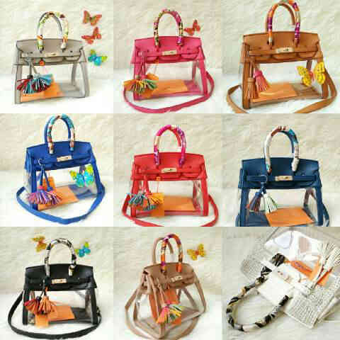 READY - Hermes Birkin Claire Plat Diamond size 30 x 22 cm bahan jelly lentur tebal bisa dilipat mirip ori leather semi premium free syall + keychain carmen + sertifikat ori, ada tali panjangnya.