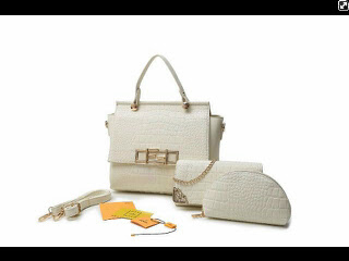 READY - Fendi 1866 3 in 1 (tas besar, clutch, dompet oval) size 28 x 26 cm, 21 x 12 cm, 18 x 11 cm bahan croco dove semi premium, ada tali panjangnya.